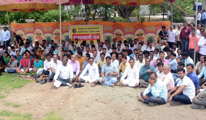 लोकमत न्यूज नेटवर्कजालना : सातव्या वेतन आयोगासह अन्य प्रमुख मागण्यांसाठी राज्य मध्यवर्ती सरकारी कर्मचारी संघटनेने पुकारलेल्या संपाला मंगळवारी जालना जिल्ह्यात मोठा प्रतिसाद मिळाला.जिल्हाधिकारी कार्यालय, तहसील, जिल्हा परिषदेतील कर्मचा-यांनी काम बंद ठेवून निदर्शने केली. यावेळी जोरदार घोषणाबाजी करण्यात आली. एकीकडे पीककर्ज मिळण्यासाठी आवश्यक असणारी सर्व कागदपत्र हे महसूल विभागाशी निगडीत असल्याने ते मंगळवारी मिळाले नसल्याने अनेक शेतकºयांना बँकेतूनही परत जावे लागले. या संदर्भात राज्य मध्यवर्ती सरकारी कर्मचारी संघटनेचे अध्यक्ष पी.बी. मते आणि सहसचिव वाय.एस.पठाण यांनी सांगितले की, या संपात जवळपास चार हजारांपेक्षा अधिक कर्मचारी सहभागी झाले आहेत. हा संप आणखी दोन दिवस चालणार आहे.दुपारी जिल्हाधिकारी कार्यालयात केवळ राजपत्रित अधिका-यांची उपस्थिती होती. मात्र संप असल्याने नेहमी गजबलेला असणारा जिल्हाधिकारी परिसरात शुकशुकाट दिसून आला.