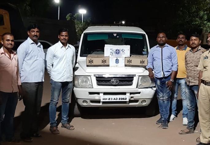 लोकमत न्यूज नेटवर्कजालना : अवैधरीत्या विदेशी दारूची वाहतूक करणारी टाटा सुमो पकडून पावणेतीन लाखांचा मुद्देमाल जप्त केला. ही कारवाई अप्पर पोलीस अधिक्षकांच्या पथकाने मंगळवारी रात्री जालना-मंठा मार्गावर केली.परभणीकडून सेवली येथे एका टाटा सुमोमधून अवैधरीत्या धुलीवंदन सणानिमित्त विक्री करण्यासाठी विदेशी दारू आणण्यात येत असल्याची माहिती अपर पोलीस अधीक्षक समाधान पवार यांच्या विशेष पथकाला मिळाली होती.यामुळे पथकाने मंगळवारी रात्री साडेअकराच्या सुमारास जालना ते मंठा मार्गावर सापळा लावला होता, मात्र, पोलीस पथकाची चाहूल लागल्याने टाटासुमो चालकाने पळ काढण्याचा प्रयत्न केला. पोलीस कर्मचाऱ्यांनी पाठलाग करुन टाटा सुमो (क्रमांक एम.एच. २३, एडी.२३६२) पकडली.गाडीत विदेशी दारूच्या २४ हजार ६५० रुपयांच्या १७० बाटल्या आढळून आल्या.यावेळी पोलिसांनी विदेशी दारू आणि २ लाख ५० हजाराची जीप, असा पावणेतीन लाखांचा मुद्देमाल जप्त केला आहे.याप्रकरणी जीपचालक महेश रत्नाप्पा डुमे (रा. सेवली) याच्याविरुद्ध मंठा पोलीस ठाण्यात गुन्हा दाखल करण्यात आला आहे.४० हजारांची दारू पकडलीशहागड : अंबड तालुक्यातील ढाकलगाव बीड-जालना राज्य महामार्गावरील युवराज ढाब्यावर स्थानिक गुन्हे शाखेच्या पथकाने बुधवारी छापा मारुन ४० हजार रुपये किमतीचा मुद्देमाल जप्त केला.स्थानिक गुन्हे शाखेचे निरीक्षक राजेंद्रसिंह गौर यांना परिसरात विनापरवाना ढाब्यावर देशी विदेशी दारुची विक्री होत असल्याची माहिती मिळाली होती. गौर यांच्या मार्गदर्शनाखाली स्थानिक गुन्हे शाखेचे जमादार संजय मगरे, रामेश्वर बघाटे यांनी पथकासह युवराज ढाब्यावर छापा टाकला देशी-विदेशी दारूच्या २५० बाटल्या जप्त केल्या.