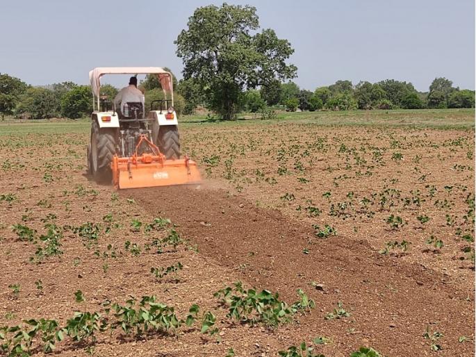 आन्वा पाडा शिवारात जूनच्या सुरुवातीलाच जोरदार पाऊस झाला. या पावसावरच शेतकऱ्यांनी पेरणी व लागवड केली. येथील बबन देशमुख यांनी आन्वा पाडा शिवारातील गट नंबर ३८२ मध्ये २५ एकरात सोयाबीनची पेरणी केली होती. पेरणीनंतर हलका ते मध्यम स्वरूपाचा पाऊस झाला. या पावसामुळे पीकही चांगले आले. परंतु, त्यानंतर पावसाने उघडीप दिल्याने पीक सुकू लागले. विहीर कोरडीठाक पडल्याने सोयाबीनला पाणी कसे द्यावे, असा प्रश्न त्यांच्यासमोर होता. चातकासारखी ते पावसाची वाट पाहत होते. परंतु, महिना उटलूनही पाऊस न पडल्याने सोयाबीनच्या पिकाने माना टाकल्या. शेवटी मंगळवारी त्यांनी ट्रॅक्टरच्या साह्याने २५ एकरातील सोयाबीन पिकावर रोटव्हिटर फिरवले.