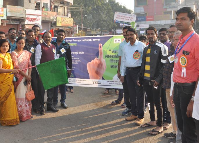 लोकमत न्यूज नेटवर्कजालना : भारत हा लोकशाही प्रधान देश असून, या देशात निवडणुकांच्या माध्यमातून आपण लोकशाही अधिक बळकट करतो. तरुणांमध्ये लोकशाहीचे बिजारोपण करण्यासाठी राष्ट्रीय मतदार दिवस महत्वाची भूमिका बजावतो, असे प्रतिपादन अप्पर जिल्हाधिकारी रवींद्र परळीकर यांनी केले.जिल्हाधिकारी कार्यालयाच्या प्रांगणात शनिवारी राष्ट्रीय मतदार दिवस साजरा करण्यात आला. या कार्यक्रमाच्या समारोपप्रसंगी ते बोलत होते. यावेळी उपजिल्हा निवडणूक अधिकारी अंजली कानडे, जिल्हा पुरवठा अधिकारी बसैय्ये, उपविभागीय अधिकारी केशव नेटके, तहसीलदार श्रीकांत भुजबळ, गटशिक्षणधिकारी विठ्ठल जायभाये, पोलीस निरीक्षक निशिकांत पवार, पोलीस उपनिरीक्षक बालाजी देवडे यांची उपस्थिती होती.परळीकर म्हणाले, शिक्षकांनी शाळेत विद्यार्थ्यांमध्ये लोकशाही मूल्यांची रुजवणूक शालेय वयात केल्यास निश्चितच आगामी काळात लोकशाही अधिक बळकट होईल व यातून मतदानाची टक्केवारी वाढेल. यावेळी जिल्ह्यातील उत्कृष्ट काम करणाऱ्या पर्यवेक्षक, मतदान केंद्रस्तरीय अधिकारी, डाटा एंट्री आॅपरेटर, निबंध, चित्रकला, रांगोळी स्पर्धेत बक्षिस प्राप्त विद्यार्थ्यांना प्रशस्तीपत्र व सन्मानचिन्ह देऊन गौरविण्यात आले. उपस्थितांना राष्ट्रीय मतदार दिनाची प्रतिज्ञा देण्यात आली.प्रारंभी उपजिल्हा निवडणूक अधिकारी अंजली कानडे यांनी गांधी चमन येथून हिरवी झेंडी दाखवून रॅलीचा शुभारंभ केला. या रॅलीमध्ये शालेय विद्यार्थी, विद्यार्थिंनी, पोलीस बँड पथक, एस.आर.पी.एफ.चे जवान आदींनी सहभाग नोंदविला.