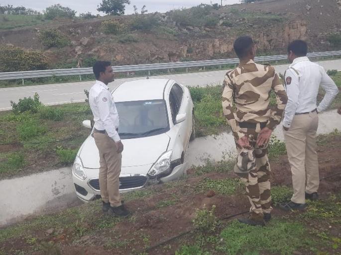 याची माहिती महामार्ग पोलिसांना देण्यात आली. माहिती मिळताच, आरटीओचे राजपूत, महामार्गाचे कर्मचारी राठोड, ठोंबरे, दाभाडे यांनी घटनास्थळी धाव घेतली. दोघांनाही बाहेर काढण्यात आले. त्यांना कुठलीही जखम झाली नव्हती.