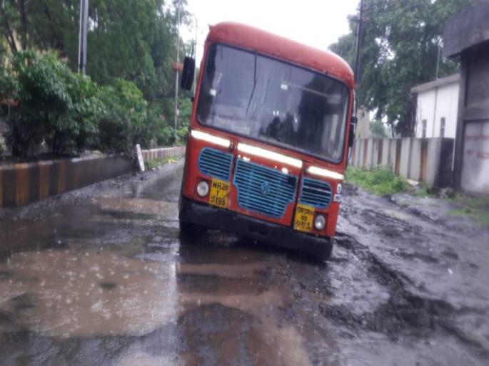 जळगावात बस फसली खड्ड्यात, सुदैवाने सर्व सुखरुप
