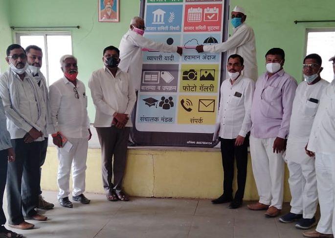 चाळीसगाव : येथील बाजार समितीमध्ये शेतकऱ्यांना बाजार समितीबद्दल संपूर्ण माहिती मिळण्यासाठी 'माय एपीएमसी, माझी बाजार समिती' या ॲपचे लोकार्पण शनिवारी करण्यात आले. यावेळी नूतन प्रशासक मंडळ उपस्थित होते बाजारभाव, शेतकरी नोंदणी, बाजारसमिती माहिती, सुट्ट्या, व्यापारी यादी, हवामान अंदाज, बातम्या व उपक्रम, फोटो गॅलरी, हमीभाव यादी, संचालक मंडळ सूची व संपर्क या साऱ्या बाबींचा या एपमध्ये उल्लेख राहणार असून, या ॲपचा शेतकऱ्यांना फायदा होणार आहे.कोरोना काळात शेतकऱ्यांना बाजार समितीत नोंदणी करण्यास येण्याची गरज नाही. तसेच व्यापारी यादीमुळे नोंदणीकृत व्यापाऱ्यांची माहिती मिळणार आहे. बाजार समितीने राबविलेले सर्व उपक्रम, फोटो गॅलरीद्वारे माहिती पडणार आहे. तसेच हवामान अंदाजामुळे रोजचे तापमान व दुसऱ्या दिवसाचा वातावरणातील बदल याची पूर्वसूचना ॲपद्वारे मिळणार आहे. या अशा अनेक बाबींमुळे शेतकऱ्यांना थेट फायदा होणार आहे. आधुनिकतेत भर पडणार आहे. जास्तीत जास्त शेतकऱ्यांनी याचा लाभ घ्यावा, असे आवाहन मुख्य प्रशासक दिनेश पाटील यांनी यावेळी केले.बाजार समितीच्या नूतन प्रशासकांनी अल्पावधीत शेतकऱ्यांच्या हितावह निर्णय घेतले असून राबविण्यात येणार सर्व उपक्रम स्तुत्य राहिले आहेत, असे गौरवोद्गार ज्येष्ठ मार्गदर्शक प्रदीप देशमुख यांनी केले.याप्रसंगी बाजार समितीचे सचिव सतीशराजे पाटील, प्रशासक ईश्वर ठाकरे, अनिल निकम, महेंद्र पाटील, भास्कर पवार, भीमराव खलाने, गोकुळ कोल्हे, नेताजी वाघ, नकुल पाटील, तुकाराम पाटील, दगडू दणके, धर्मा काळे, रमेश सोनागिरे, बापूराव चौधरी, मधुकर कडवे, स्वप्नील कोतकर कर्मचारी वीरेंद्र पवार, प्रवीण वाघ, ज्ञानेश्वर गायके, प्रशांत मगर आदी उपस्थित होते.