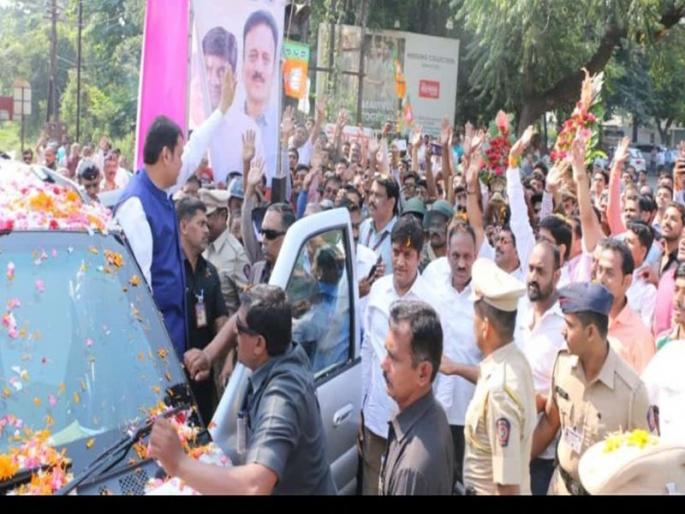 जळगावात मुख्यमंत्री देवेंद्र फडणवीस यांचे पुष्पवृष्टी करीत कंपनी कामगारांनी केले स्वागत