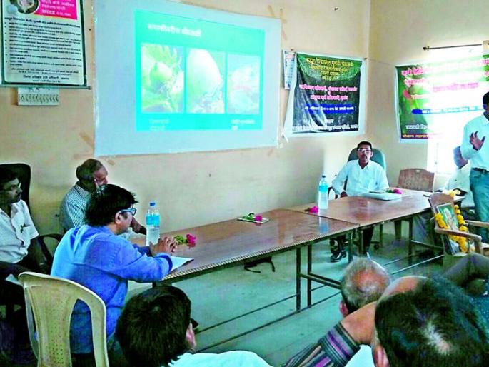 लोकमत न्यूज नेटवर्कभडगाव : सध्या प्रचंड तापमान असून, अशा वातावरणात शेतकऱ्यांनी कापसाची लागवड करू नये, असे आवाहन कृषी विभागातर्फे आयोजित प्रशिक्षणात करण्यात आले.कृषी निविष्ठाधारक विक्रेते यांचे खरीप हंगामपूर्व तालुकास्तरीय गुणवत्ता नियंत्रण प्रशिक्षण व कापूस पिकावरील गुलाबी बोंडअळी व्यवस्थापन तसेच कीटकनाशकाची सुरक्षित हाताळणी व वापर कार्यशाळा पार पडली. त्यात मान्यवर मार्गदर्शन करताना बोलत होते. अध्यक्षस्थानी रासायनिक खत व कीटक नाशके असोसिएशनचे तालुकाध्यक्ष संजय पाटील होते.व्यासपीठावर तालुका कृषी अधिकारी ए.व्ही. जाधव, कृषी विस्तार अधिकारी डी.एम.निकुंभ, बियाणे कंपनीचे एस.एस.खैरनार, प्रमोद कडलंगे, अशोक परदेशी, कृषी सहाय्यक पी.एन.खाडे, असोसिएशनचे उपाध्यक्ष प्रकाश राठोड, पंचायत समितीचे कृषी अधिकारी बी.बी.बोरसे आदी उपस्थित होते.कृषी विस्तार अधिकारी निकुंभ यांनी कृषी निविष्ठेबाबत सूचनांच्या अंमलबजावणीबाबत मार्गदर्शन केले. बियाणे कंपनीचे खैरनार यांनी कापूस पिकावरील शेंदरी बोंडअळीचा प्रादुर्भाव कमी करण्यासाठी प्रभावी उपाययोजना करावी, असे मार्गदर्शन केले. कडलगे यांनी कीटकनाशकांची सुरक्षित हाताळणी व वापर याबाबत मार्गदर्शन केले.सध्या तापमान जास्त आहे. यामुळे कापूस पिकाची लागवड ही तापमान कमी झाल्यानंतर करावी. कमी कालावधीचे बियाणे वाणाची लागवड करावी. अधिकृत कृषी निविष्ठा विक्रेते यांच्याकडूनच बियाणे खरेदी करावे. कापूस लागवडीबाबत शेतकºयांना संपूर्ण तालुक्यात गावागावात मार्गदर्शन करण्यात येईल.-ए.व्ही.जाधव, तालुका कृषी अधिकारी, भडगाव