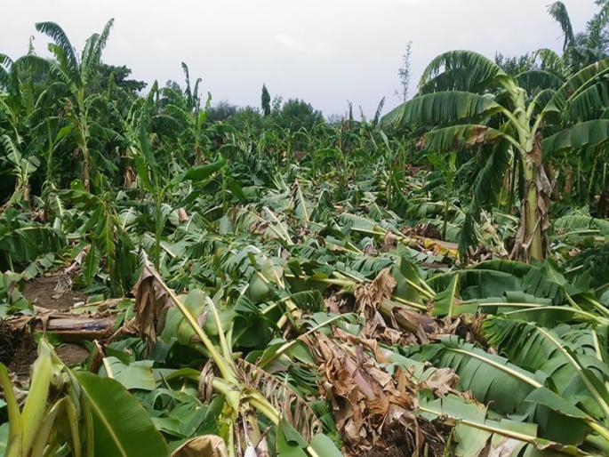 जळगाव: जून महिन्याला प्रारंभ होताच मान्सूनपूर्व पाऊस व वादळाचातडाखा जिल्ह्यातील ८ तालुक्यांना बसला असून २,३, ५ व ६ जून या चारच दिवसांत जिल्ह्यातील ११५ गावांमधील ४७८९ शेतकºयांचे ३८५२ हेक्टरवरील पीक व फळबागा उद्ध्वस्त झाल्या आहेत. त्यात रावेर व मुक्ताईनगरला सर्वाधिक नुकसान झाले असून पंचनाम्यांना सुरूवात झाली आहे. दरम्यान ६ रोजी जिल्ह्यातील इतर तालुक्यांमधील झालेल्या नुकसानीची आकडेवारी प्रशासनाकडे गुरूवार, ७ रोजी सायंकाळपर्यंत प्राप्त झालेली नव्हती.जिल्ह्यात २ जून रोजी मान्सूनपूर्व पाऊस व वादळी वाºयांनी यावल, चोपडा, भडगाव, चाळीसगाव या भागात तडाखा बसला. त्यानंतर ३ जून रोजी चोपडा, पाचोरा तालुक्यांना, ५ जून रोजी रावेर, यावल तर ६ रोजी रावेर,मुक्ताईनगर, बोदवड या तालुक्यांना वादळी वारा व पावसाचा जोरदार फटका बसला. याखेरीज भुसावळ,जळगाव व इतर तालुक्यांनाही फटका बसला. मात्र त्याची आकडेवारी प्रशासनाकडे सायंकाळपर्यंत प्राप्त झालेली नव्हती.रावेर, मुक्ताईनगरला सर्वाधिक नुकसानरावेर तालुक्यात सर्वाधिक नुकसान झाले आहे. तालुक्यातील ३२ गावांमधील २०४० शेतकºयांचे १९५२ हेक्टरवरील केळी पीक उद्ध्वस्त झाले आहे. त्या पाठोपाठ मुक्ताईनगर तालुक्यात ३२ गावांमधील २१५२ शेतकºयांचे १५५६ हेक्टरवरील केळी पिकाचे नुकसान झाले आहे. यावल तालुक्यात १८ गावांमधील २२६ शेतकºयांच्या १५८.५० हेक्टरवरील केळी पिकाचे नुकसान झाले आहे. बोदवड तालुक्यातील ७ गावांमधील ३० शेतकºयांचे २१.५ हेक्टर कागदी लिंबू व ४.५ हेक्टर वरील केळी पिकाचे नुकसान झाले आहे. चोपडा तालुक्यातील १० गावांमधील १४२ शेतकºयांचे ८६ हेक्टर केळीचे तर भडगाव तालुक्यातील ४ गावांमधील ३१ शेतकºयांचे २५ हेक्टर केळी व २ हेक्टर कागदी लिंबूचे, चाळीसगाव तालुक्यातील ६ गावांमधील १२३ शेतकºयांचे ४३.६२ हेक्टर केळी व १५.४४ हेक्टर लिंबू, १२ हेक्टर फळबागांचे असे ७१.०६ हेक्टरचे नुकसान झाले आहे. तर पाचोरा तालुक्यात ६ गावांमधील ४५ शेतकºयांचे १६ हेक्टरवरील केळीचे नुकसान झाले आहे.जिल्हाधिकाºयांनी केली पाहणीजिल्हाधिकारी किशोर राजे निंबाळकर यांनी गुरूवारी भुसावळ तालुक्यातील तसेच रावेर तालुक्यातील काही नुकसानग्रस्त गावांची पाहणी केली. नुकसानीचे पंचनामे करण्याचे आदेशही जिल्हाधिकाºयांनी दिले आहेत. त्यानुसार विमा कंपनी, महसूल विभाग, ग्रामविकास विभाग व कृषी विभागामार्फत एकत्रितपणे पंचनामे सुरू झाले आहेत.वादळीवारे व पावसामुळे २ जून पासून आतापर्यंत नुकसानगावे शेतकरी पिके व क्षेत्र (हेक्टर)यावल १८ २२६ १५८.५० (केळी)रावेर ३२ २०४० १९५२ (केळी)बोदवड ७ ३० २६ (कागदी लिंबू व केळी)मुक्ताईनगर ३२ २१५२ १५५६ (केळी)चोपडा १० १४२ ८६ (केळी)भडगाव ४ ३१ २७(केळी व 