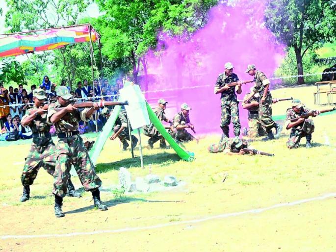 ठळक मुद्दे१८ बटालियन एनसीसीतर्फे आयोजनसर्जिकल स्ट्राईकचे प्रात्यक्षिक पाहून पे्रक्षकांच्या अंगावर शहारेमहाविद्यालयाच्या प्रांगणाला छावणीचे स्वरूप