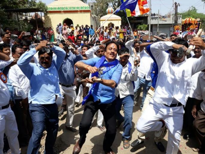 जळगाव जिल्ह्यात डॉ. बाबासाहेब आंबेडकर जयंतीचा अपूर्व उत्साह, जलसंपदामंत्री गिरीश महाजन यांनी लेझीम खेळून वाढविला कार्यकर्त्यांचा उत्साह