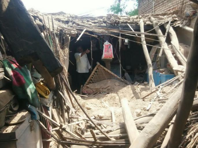 निरूळ येथे घराचा खांब खचल्याने छत कोसळले