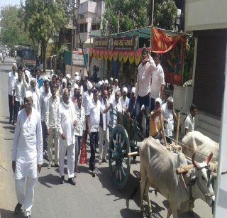अमळनेर, जि. जळगाव, दि. 7 - शेतक:यांना कर्जमाफी देत त्यांचा सातबारा कोरा करण्यात यावा, हवामान आधारित विमा संकल्पना योजना राबवावी, पंतप्रधान विमा योजना बंद करावी यासह विविध मागण्यांसाठी आज शेतक:यांतर्फे प्रांताधिकारी कार्यालयावर मोर्चा काढण्यात आला. यावेळी शासन विरोधी घोषणांनी परिसर दणाणून गेला होता. या मोर्चाचे नेतृत्व शेतक:यांनीच केले होते.छत्रपती शिवाजी महाराज नाटय़संकुलापासून या मोर्चाला सुरुवात झाली. मोर्चाच्या अग्रभागी दोन बैलगाडय़ा होत्या. विविध घोषणा देत हा मोर्चा स्टेशनरोड मार्गे प्रांत कचेरीवर धडकला. विधानभवन परिसरात शेतक:याला झालेल्या मारहाणीचा या वेळी निषेध करण्यात आला. यावेळी शेतकी संघाचे अध्यक्ष संजय पाटील, जि.प.चे माजी सदस्य शिवाजी दौलत पाटील, कृउबाचे माजी संचालक धनगर दला पाटील, यांनी मार्गदर्शन केले. यावेळी शेतक:यांनी तहसीलदार प्रदीप पाटील यांना विविध मागण्यांचे निवेदन दिले.