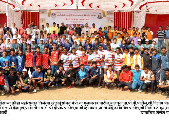 जळगाव- कवयित्री बहिणाबाई चौधरी उत्तर महाराष्ट्र विद्यापीठाच्या पहिल्या क्रीडा महोत्सवात मैदानी स्पर्धेतील महिला गटाचे सांघिक विजेतेपद नंदुरबारच्या जी.टी.पी. महाविद्यालयाने तर पुरुष गटाचे सांघिक विजेतेपद रावेरच्या श्री.व्ही.एस.नाईक कला, वाणिज्य व विज्ञान महाविद्यालयाने पटकावले. पाणी पुरवठा व स्वच्छतामंत्री गुलाबराव पाटील यांच्या प्रमुख उपस्थितीत सोमवारी या क्रीडा महोत्सवाचा प्रचंड जल्लोषात समारोप झाला.शनिवार पासून विद्यापीठाच्या क्रीडा संकुलात पहिल्या क्रीडा महोत्सवाचे आयोजन विद्यापीठाच्यावतीने करण्यात आले होते. सोमवारी गुलाबराव पाटील यांच्याहस्ते या महोत्सवातील विविध स्पर्धेतील विजेत्यांना पारितोषिके देण्यात आली. कुलगुरु प्रा.पी.पी.पाटील अध्यक्षस्थानी होते. यावेळी कार्याध्यक्ष तथा व्यवस्थापन परिषद सदस्य दिलीप पाटील, प्राचार्य एल.पी.देशमुख, प्रा.नितीन बारी, दीपक पाटील, डॉ.रत्नमाला बेंद्रे, प्रभारी कुलसचिव प्रा.बी.व्ही.पवार, अधिसभा सदस्य नितीन ठाकूर, शब्बीर सैय्यद, क्रीडा संचालक डॉ.दिनेश पाटील, प्रा.धामणे, प्रा.प्रतिभा ढाके, प्रा.सतिष कोगटा, डॉ.अनिता कोल्हे, प्रा.के.पी.पाटील, प्रा.व्ही.एल.पाटील, मनोज चौधरी आदी उपस्थिती होते.यश-अपयशाची पर्वा न करता चिकाटीने खेळले पाहिजेसमारोप कार्यक्रमाप्रसंगी गुलाबराव पाटील म्हणाले की, अंगी असलेल्या नैपुण्याचे सोने करण्याची संधी म्हणजे हा क्रीडा महोत्सव आहे. यश-अपयशाची पर्वा न करता खेळाडूंनी चिकाटीने खेळले पाहिजे. राजकारण्यांकडून हा चिकाटीचा गुण खेळाडूंनी घ्यावा. असे सांगून ते म्हणाले की, या महोत्सवात आदिवासी भागातील विद्यार्थ्यांना बरीच पारितोषिके प्राप्त झाली आहेत. त्यामुळे एका अथार्ने महात्मा फुले यांचे स्वप्न पूर्ण झाले आहे. सर्वच क्षेत्रात मुली अग्रेसर असून आता निवडीचे स्वातंत्र मुलींकडे गेले आहे. अभ्यास आणि खेळ याची सांगड घालून आयुष्यात यशस्वी व्हा असे ते म्हणाले.दरवर्षी होणार क्रीडा महोत्सवअध्यक्षीय समारोपात कुलगुरु प्रा.पी.पी.पाटील यांनी दरवर्षी हा क्रीडा महोत्सव आयोजित केला जाणार असल्याचे जाहिर केले. क्रीडा संचालक डॉ.दिनेश पाटील यांनी प्रास्ताविकात या महोत्सवात ७५० खेळाडू सहभागी झाल्याची माहिती दिली. खेळाडूंच्यावतीने उन्मेष कोकणी, (नवापुर), कल्याणी देवरे (धुळे) आणि संघव्यवस्थापकांच्यावतीने प्रा.बी.आर.मोरे यांनी मनोगत व्यक्त केले. प्रा.जी.ए.उस्मानी यांनी कार्यक्रमाचे सूत्रसंचालन केले.असा आहे निकाल- व्हॉलीबॉल स्पर्धेत पुरुष प्रथम कला, वाणिज्य व विज्ञान महाविद्यालय, नवापुऱ, द्वितीय एस.एम.एम.साहित्य,विज्ञान व वाणिज्य महाविद्यालय, पाचोरा़, तृतीय श्रीमती एन.एन.चौधरी कला,वा