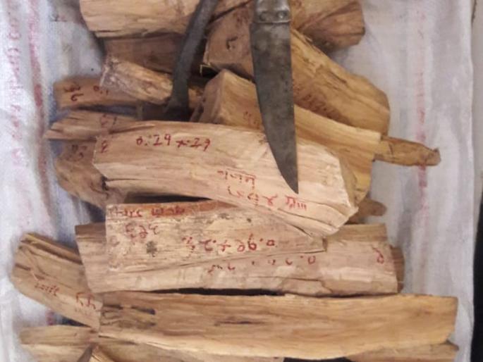 यावल शहरातील फैजपूर रस्त्यावर पेट्रोल पंपामागील मोकळ्या जागेत थांबलेल्या उतारूंकडून चंदनाच्या लाकडाचे ठोकळे गुरुवारी जप्त करण्यात आले.