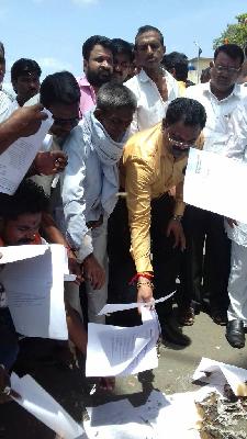 पाचोरा,दि.19- शासनाने तत्वत: कर्जमाफी जाहीर करून जाचक निकष लावून आदेश काढला. हा आदेश काढून शासनाने शेतक:यांची चेष्टा केली असल्याचा आरोप करीत पाचोरा येथे शिवसेना आमदार किशोर पाटील व शेतक:यांनी सोमवारी या शासन आदेशाची होळी केली आहे.