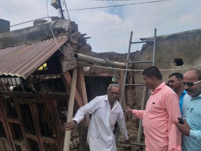 चाळीसगाव, जि.जळगाव : तालुक्यातील वाघळी येथे अवकाळी पावसामुळे उत्तम जयराम हाडपे यांचे घर गुरुवारी मध्य रात्री दोन वाजेच्या सुमारास घर कोसळले. घराचे मोठ्या प्रमाणात नुकसान झाले असून, घराच्या ढिगाऱ्याखाली त्यांचा मुलगा सापडला होता. पण शेजारी असलेल्या लोकांनी त्यास बाहेर काढण्यासाठी मदत केली.अवकाळी पावसामुळे झालेल्या नुकसानीची पाहणी करण्यासाठी शुक्रवारी सकाळी राष्ट्रीय समाज पक्षाचे जळगाव जिल्हाध्यक्ष विठ्ठलराव शिंगाडे, रासपचे चाळीसगाव विधानसभा क्षेत्रप्रमुख रवींद्र पाटील, जय मल्हार सेनेचे चाळीसगाव तालुकाप्रमुख बापूसाहेब लेणेकर, डॉ.सुभाष निकुंभ, वाघळी येथील ज्येष्ठ कार्यकर्ते अविनाश सूर्यवंशी आदींनी उत्तम हाडपे यांच्या परिवाराची भेट घेऊन धीर देण्याचा प्रयत्न केला.या घटनेचा पंचनामा तत्काळ पंचनामा करावा, अशी मागणी संबंधितांनी वाघळी तलाठी यांना दूरध्वनीवरून कळविली आहे.