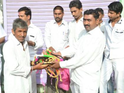 गेल्या काही दिवसांपासून पावसाने पाठ फिरविली आहे. शेतात पिके करपली आहे. हंगाम हातातून जाण्याची स्थिती असल्याने बळीराजा संकटात सापडला आहे. वर्षभर आपल्या खांद्याला खांदा लावून काम करणाºया बैलाचा सण असलेला पोळा सण साजरा कसा करायचा असा प्रश्न शेतकºयांसमोर निर्माण झाला आहे. त्या अनुशंगाने हटकर समाज प्रगती मंडळातर्फे ११ शेतकºयांना बैलाचा साज देण्यात आला.
