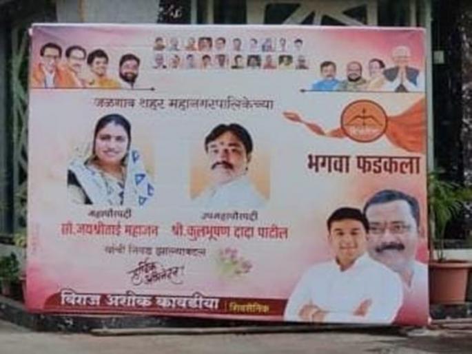 मनपाच्या महापौर, उपमहापौर निवडीची प्रक्रिया सभागृहात सुरू असून निवड होण्यापूर्वीच शिवसेनेच्या काही उत्साही कार्यकर्त्यांनी विजयाचे फलक लावले आहे. मनपाच्या मुख्य प्रवेशद्वाराजवळ शिवसेना कार्यकर्ते विराज कावडिया यांनी जयश्री महाजन व कुलभूषण पाटील यांच्या निवडीचे फलक लावले आहे. भगवा फडकला अशा शब्दात असलेले फलक नागरिकांचे लक्ष वेधून घेत आहे.