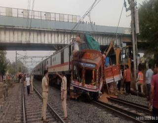जळगावात मोठा अपघात; गव्हाने भरलेला भरधाव ट्रक गेट तोडून रेल्वेवर आदळला