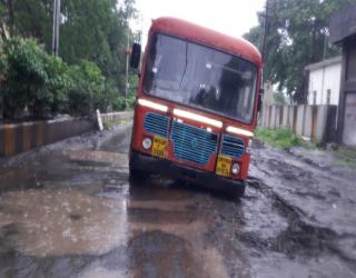जळगावात बस फसली खड्ड्यात, सुदैवाने सर्व सुखरुप