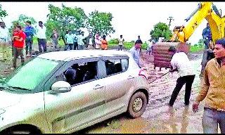 जळगाव : चिखलमय रस्त्यामुळे औरंगाबाद महामार्गावर वाहनधारकांचे हाल