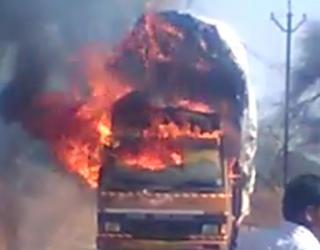 जळगाव : बोदवड येथे रस्त्यावर कापसाची बर्निंग ट्रक