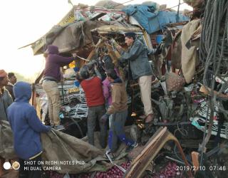 महामार्गावर ओव्हरटेक करताना दोन ट्रक धडकले समोरासमोर