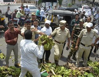 जळगावात राष्टÑवादीने फेकली जलसंपदामंत्री गिरीश महाजन यांच्या कार्यालयावर केळी, आंदोलनाला गालबोट