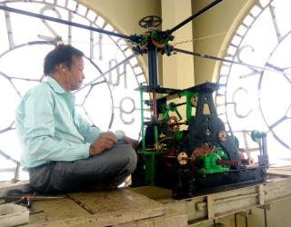 जळगाव : सुरत येथील कारागिराने केली जळगावातील टॉवरवरील घड्याळाची दुरुस्ती