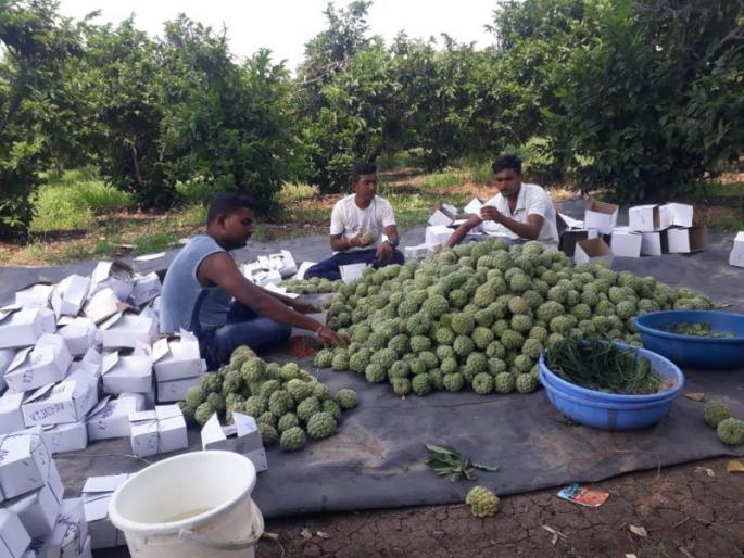 ठळक मुद्देसिताफळाची विक्री १०० ते १५० रुपये डझनशेतकरी करताहेत थेट गुजराथमध्ये विक्रीनिसर्ग कवी ना.धों.महानोर यांनी दिली सिताफळाला ओळख