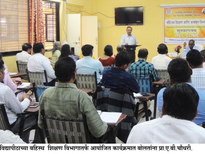 जळगाव- कवयित्री बहिणाबाई चौधरी उत्तर महाराष्ट्र विद्यापीठाच्या बहि:स्थ शिक्षण आणि अध्ययन विभागाच्यावतीने विविध विद्याशाखेतील प्राध्यापक संमंत्रकांसाठी प्रशिक्षण कार्यक्रम रविवारी पार पडला़शैक्षणिक वर्ष २०१९ मध्ये जळगाव, धुळे व नंदूरबार तसेच महाराष्ट्रातील व महाराष्ट्राबाहेरील इतर जिल्ह्यांतून पदवी व पदव्युत्तर शिक्षणक्रमास प्रवेशित विद्यार्थ्यांना शिक्षणक्रमांतर्गत प्रवेश देण्यापासून ते अंतिम निकालापर्यंतच्या विविध प्रक्रियांची माहिती करुन देण्यासाठी प्रशिक्षण कार्यक्रम घेण्यात आला. यावेळी विभागाचे संचालक प्रा.ए.बी.चौधरी , प्रा.एस.टी.बेंद्रे, प्रिन्सिपल इन्वेस्टिगेटर सिलेज (सीएडीपी) हे उपस्थित होते. प्रा. चौधरी यांनी विभागाच्या कार्यपध्दतीची माहिती देतांना विद्यार्थी संख्या वाढीच्या दृष्टीने तसेच गुणवत्तापूर्वक शिक्षण उपलब्ध करुन देण्यासाठी विभागाद्वारे राबविण्यात येणारे नवनवीन उपक्रम व केल्या जाणाऱ्या प्रयत्नांबाबत माहिती देऊन प्रशिक्षण कार्यक्रम आयोजनामागील भूमिका विशद केली. प्रशिक्षण कार्यक्रमास ५५ प्राध्यापक सहभागी झाले होते. कार्यक्रमाचे प्रास्ताविक विभागाचे संचालक प्रा.ए.बी.चौधरी यांनी केले. सूत्रसंचालन व आभार सह.प्रा.मनिषा जगताप यांनी केले.