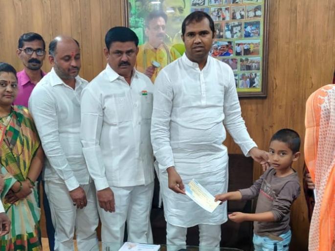 वाकडी येथील रहिवासी व सीमा सुरक्षा दलातील शहिद जवान स्व. अमित साहेबराव पाटील हे महिनाभरापूर्वी कर्तव्यावर असताना वीरगतीस प्राप्त झाले. त्यांचा साडेपाच वर्षीय मुलगा भुपेश अमित पाटील याचे शैक्षणिक पालकत्व चाळीसगाव विधानसभा मतदारसंघाचे आमदार मंगेश चव्हाण यांनी स्वीकारत असल्याचे वचन दिले होते. त्यानुसार प्रजासत्ताक दिनी आमदार मंगेश चव्हाण यांनी यावर्षीचा शैक्षणिक फी साठीचा धनादेश स्व. अमित पाटील यांच्या परिवारास सुपुर्द केला.