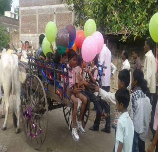 खान्देशात घोडा, बैलगाडीवरील मिरवणुकीने विद्याथ्र्याचे स्वागत