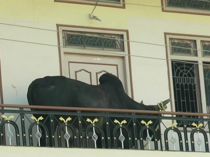 दुसऱ्या मजल्यावर अडकला 200 किलोचा बैल, बाहेर काढण्यासाठी केले असे प्रयत्न