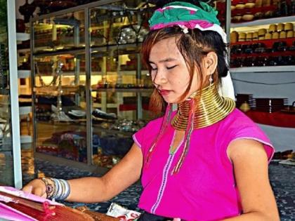 म्यानमारची सगळ्यात इंटरेस्टिंग गोष्ट अशी आहे की या ठिकाणी पडाउंह जातीच्या महिला आपली मान सुंदर आणि लांब दिसावी यासाठी वयाच्या ५ व्या वर्षापासून गळ्यात आणि मानेत धातूच्या बांगड्या घालतात. म्यानमारमधील लोक, रेशीम विणण्यात, हाताने दागदागिने बनवण्यात व लाकडावर कोरीव काम करण्यात किती माहीर आहेत. या ठिकाणी सागवान आणि इतर लाकडांपासून मानवांच्या, वाघांच्या, घोड्यांच्या, गव्यांच्या आणि हत्तींच्या सुबक मूर्ती बनवल्या जातात.