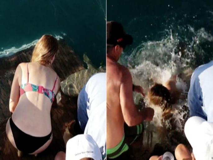 Video : खाता खाता शार्कनं तरुणीलाच पाण्यात खेचलं!