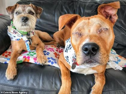 या दोन्ही कुत्र्यांची मालक २७ वर्षी जेस मार्टिन आहे. ती एका फायर सर्व्हिस कंपनीमध्ये काम करते. जेस सांगते की, स्टेफी एमस जन्मापासूनच बघू शकत नाही. त्याचा जन्म एका बचाव केंद्रात झाला होता. साधारण ४ महिने त्याच्यावर उपचार सुरू होते. गेल्या वर्षी ऑगस्ट महिन्यात जेसने स्टेफीला पहिल्यांदा पाहिलं होतं. त्यावेळी स्टेफी केवळ ९ दिवसांचा होता. नंतर जेस त्याला घरी घेऊन आली.