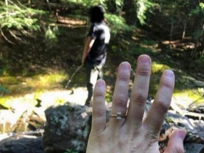 लोकांना हिऱ्याची अंगठी दाखवत होती महिला, फोटोत कैद झाला लघुशंका करणारा बॉयफ्रेन्ड