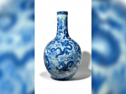 निळ्या आणि पांढऱ्या रंगाच्या या फुलदानीला मूळ किंमतीपेक्षा अनेक पटीने जास्त किंमत मिळाली. फूलदानीचं धड गोलाकार आहे. यावर ढग आणि ड्रॅगनचे चित्र आहे.