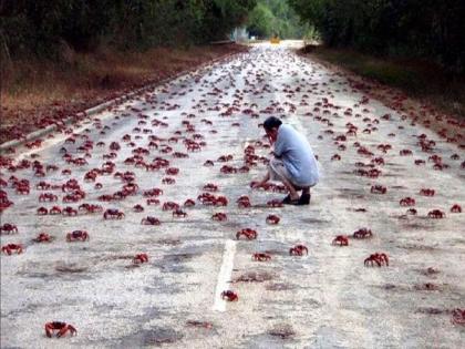 या खेकड्यांमुळे रस्ते पूर्णपणे लाल होतात. हजारो खेकडे तर गाड्यांखाली येऊन मरतात सुद्धा. मात्र, जागोजागी बोर्डांवर गाडी हळू चालवण्याचे मेसेजही लिहिलेले आहेत. काही ठिकाणी तर रस्तेच बंद केले जातात.