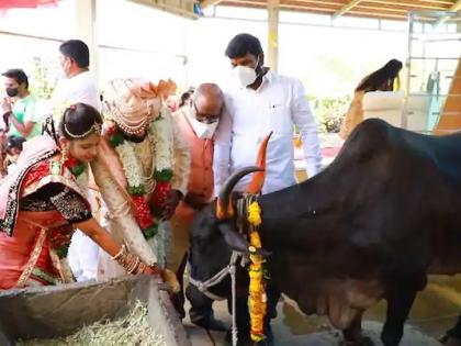 याबाबतचे वृत्त एबीपी माझाने प्रकाशित केले आहे. या वृत्तानुसार लातूरमधील डॉ. सचिन आणि भाग्यश्री यांचा विवाह सोहळा नुकताच पार पडला. कोरोनाकाळात झालेला हा विवाहसोहळा एका वेगळ्याच कारणासाठी सध्या चर्चेचा विषय ठरत आहे. याचं कारण म्हणजे हा लग्नसोहळा कुठल्याही घरी, रिसॉर्टवर किंवा मंगलकार्यालयात नाही तर एका गोशाळेमध्ये संपन्न झाला. कोरोनाच्या नियमावलीमुळे विवाहाला मोजकेच नातेवाईक उपस्थित होते. मात्र लग्नात वऱ्हाडी म्हणून वधुवरांना आशीर्वाद देण्यासाठी २०० हून अधिक गाई वऱ्हाडी म्हणून उपस्थित होत्या.
