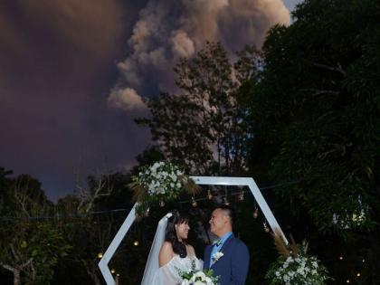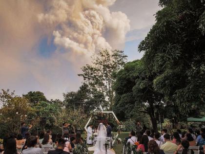 फिलिपीन्समधील सक्रिय ज्वालामुखींपैकी एक 'ताल' ज्वालामुखीमुळे मनीलाच्या आजूबाजूची परिस्थिती वाईट झाली आहे. पण असं असूनही लोक जीवनाचा आनंद साजरा करत आहेत. येथील एका कपलने ज्वालामुखी फुटण्यादरम्यानच लग्नगाठ बांधली. हा ज्वालामुखी इतका जवळ आहे की, त्यांच्या फोटोशूटमध्ये या ज्वालामुखीतून राख आकाशात उडताना बघितली जाऊ शकते. या कपलच्या लग्नाचे फोटो व्हायरल झाले आहेत. फोटोग्राफर रांडोल्फ इवनने सांगितले की, ही राख त्यांच्या कपड्यांवरही पडत होती. सगळे पाहुणे शांततेत सगळे रितीरिवाज पूर्ण करत होते.