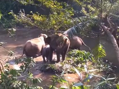 इंडियन एक्सप्रेसने दिलेल्या वृत्तानुसार, केरळच्या थत्तेकांडमधील उरुलांथन्नी या नदीत एक हत्तीचं पिल्लू नदी ओलांडताना दलदलीत पडलं. हत्तींच्या या कळपाने या पिल्लाला बाहेर काढण्यासाठी शर्थीचे प्रयत्न केले होते. त्यांनी रात्रभर मेहनत घेतली. पण ते पिल्लू काही बाहेर आलं नाही. दुसऱ्या दिवशी ही बातमी गावभर पसरली. वनविभागाच्या अधिकाऱ्यांपर्यंत ही बातमी पोहोचली. अधिकाऱ्यांनी लागलीच मदतीसाठी धाव घेतली. दलदलीत अडकलेल्या पिल्लू बाहेर काढण्यासाठी वनविभाग कामाला लागलं होतं. तब्बल ५ हे रेस्क्यू ऑपरेशन सुरू होतं. गावकरी आणि कर्मचाऱ्यांच्या मदतीने शेवटी दलदलीत अडकलेल्या हत्तीच्या पिल्लूला बाहेर काढण्यात यश आलं. मानवानं आपल्या पिल्लूला वाचवलं हे पाहून त्याच्या आईलाही आनंद झाला. आपल्या बाळाचे जीव वाचवल्याप्रकरणी कृतज्ञता व्यक्त केली पाहिजे या हेतूने त्या हत्तीणीने आपली सोंड उंचावून सगळ्यांचे आभार मानले.