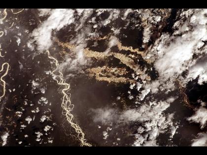Gold Forest : पेरूच्या अॅमेझॉन जंगलाचे नुकतेच अंतराळातून फोटो घेण्यात आले. फोटो जेव्हा डेव्हलप केले गेले तेव्हा समजलं की, इथे तर सोन्याचा खजिना आहे. चारही बाजूने सोनंच सोनं आहे. हा फोटो स्पेस स्टेशनमधील एका अंतराळवीराने घेतला आहे. मुळात हा फोटो सोन्याच्या जंगलाचा नाही. तर अॅमेझॉनचं जंगल आणि येथील सोन्याचं बेकायदेशीर उत्खनन दाखवतो.