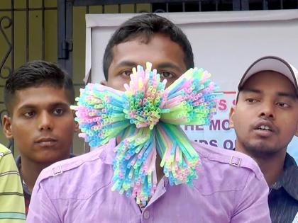 तोंडात भरपूर स्ट्रॉ कोंबण्याचा गिनिज वर्ल्ड रेकॉर्ड या भारतीयाच्या नावे
