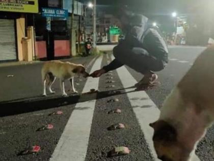 माणूस असो किंवा मुकी जनावरं भूक सगळ्यांनाच लागते. लॉकडाऊनदरम्यान भूक भागवण्याासाठी मदत करणारे अनेक व्हिडीओ सोशल मीडियावर व्हायरल होत आहेत. अत्यावश्यक सेवेतील कर्मचारी गरजवंताना मदतीचा हात देत आहेत. तर काही पोलीस कर्मचारी लोकांचे अन्नदाता तर काही ठिकाणी देवदूत बनून आपलं कर्तव्य करत आहेत. आज आम्ही तुम्हाला अशाच एका व्यक्तीबाबत सांगणार आहोत.