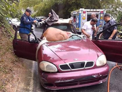 एक फारच धक्कादायक घटना समोर आली आहे. यात घटनेत एक घोडा वरून कारवर पडला आणि कारच्या समोरच्या भागात अडकला. ही धक्कादायक घटना Guaynabo, Puerto Rico येथे घडली. या घटनेचे फोटो काहींना विचलित करू शकतात.