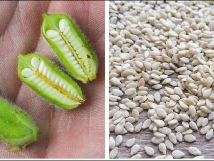 तिळाचं झाड सामान्यपणे एक मीटर उंच असतं. जेव्हा ते पूर्णपणे भरतात तेव्हा मोहरीसारखं त्यांना काढलं जातं. फोटोत तुम्ही बघू शकता की, कच्चे तिळ कसे दिसतात.