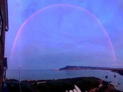 इंग्लंडच्या Dorset, Somerset आणि Gloucestershire मध्ये सोमवारी सायंकाळी गुलाबी इंद्रधनुष्य दिसला. BBC चे हवामानाचे तज्ज्ञ Lan Boutland यांच्यानुसार, 'सांयकाळी दिसणारा हा इंद्रधनुष्य गुलाबी दिसतो. असं सूर्याच्या अॅंगलमुळे होतं'.