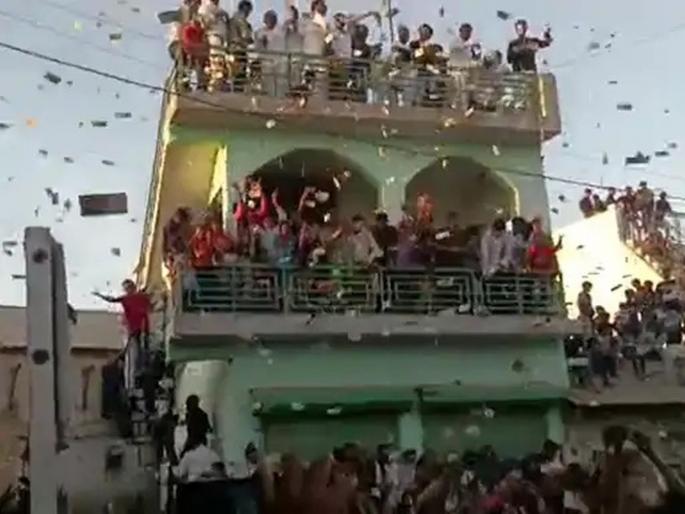 या घटनेचा व्हिडीओ समाजमाध्यमांवर व्हायरल झाला आहे. करीम यादव आपल्या घराच्या गच्चीवर उभे राहून पुतण्या रज्जाक याच्या वरातीवर नोटांची बरसात करताना व्हिडीओत दिसत आहेत. त्यावेळी लाउडस्पीकरवर जोधा-अकबर चित्रपटातील ‘अजीमो-शान शहनशाह’ हे गाणे वाजविण्यात येत होते. जेसीबीमध्ये बसविण्यात आलेल्या रज्जाकची वरात लग्नमंडपात आली तेव्हा सर्वांनी त्याचे जंगी स्वागत केले.