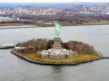 १) स्टॅच्यू ऑफ लिबर्टी अमेरिकेच्या न्यूयॉर्क शहराच्या मॅनहॅटनमध्ये लिबर्टी बेटावर आहे.