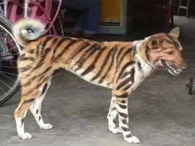 शिवमोगाः शेती करताना शेतकऱ्याला अनेक समस्यांचा सामना करावा लागतो. अस्मानी आणि सुलतानी संकटांबरोबरच जंगली श्वापदांचा त्याला त्रास असतो. शेतात रात्रीत डुक्कर किंवा माकडं, इतर जनावरं घुसून पिकांची नासधूस करतात. त्यामुळे शेतकऱ्यांचं मोठं नुकसान होतं. जंगली श्वापदांच्या समस्येवर कर्नाटकातील एका शेतकऱ्यानं जबरदस्त आयडिया शोधून काढली आहे. माकडांपासून शेताला वाचवण्यासाठी या अवलियानं एका कुत्र्यालाच वाघोबा बनवलं आहे. त्यानं या कुत्र्याला वाघाच्या रंगांनी रंगवून टाकलं. कर्नाटकातल्या शिवमोगा येथे हा प्रकार घडला असून, आता हा कुत्रा एखाद्या वाघासारखाच दिसतो. कुत्र्याच्या अंगावर पिवळे आणि काळ्या रंगांचे पट्टे काढण्यात आल्यानं तो एकदम वाघासारखाच दिसतो. डेक्कन हेरॉल्डच्या रिपोर्टनुसार, शिवमोगातल्या मलंड क्षेत्रातील एका शेतकऱ्यानं हा नवाच प्रयोग केला आहे. या भागात माकडांनी उच्छाद आणलेला असून, शेतकऱ्यांच्या पिकांची ती माकडं नासधूस करत आहेत. त्यामुळेच शेतकऱ्यानं चक्क कुत्र्यालाच वाघ बनवलं आहे. शेतकरी श्रीकांत गौडा म्हणतो, उत्तर कर्नाटक गेल्यानंतर ही कल्पना माझ्या डोक्यात आली. चार वर्षांपूर्वी मी भटकलला गेलो होतो. तेव्हा शेतापासून माकडांना दूर ठेवण्यासाठी खोट्या वाघोबाच्या प्रतिमेचा वापर करण्यात येत होता. गौडा यांनी आपल्या भागातही हीच रणनीती वापरण्याचा विचार केला. परंतु यातून फारसा फायदा होत नसल्याचीही खदखद त्यांनी व्यक्ती केली आहे. हेअर डायच्या मदतीनं ते या कुत्र्याला रंगवतात, तो रंग महिन्याभरात निघत असल्यानं त्या कुत्र्याला महिन्यातून एकदा रंगवावं लागतं.